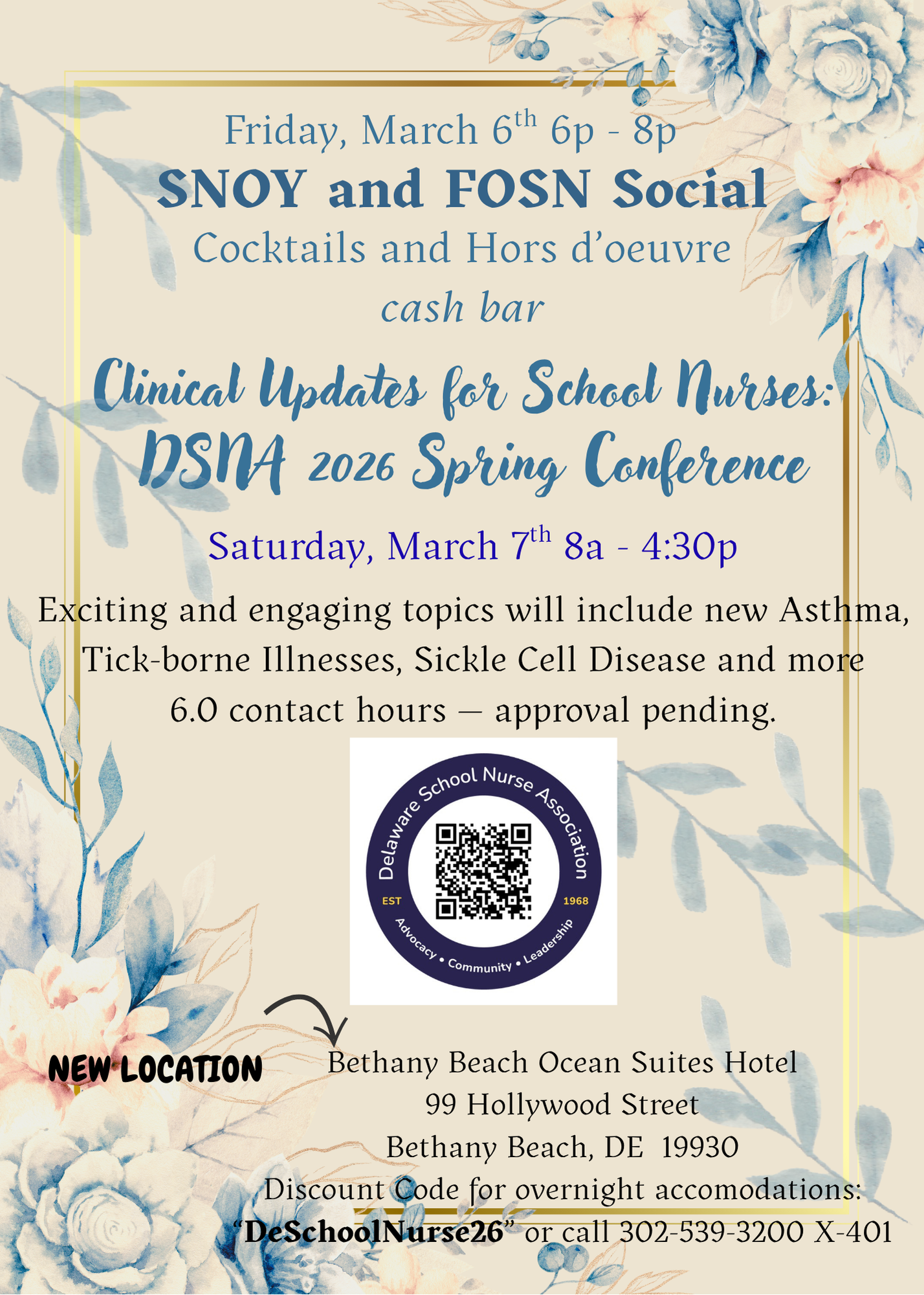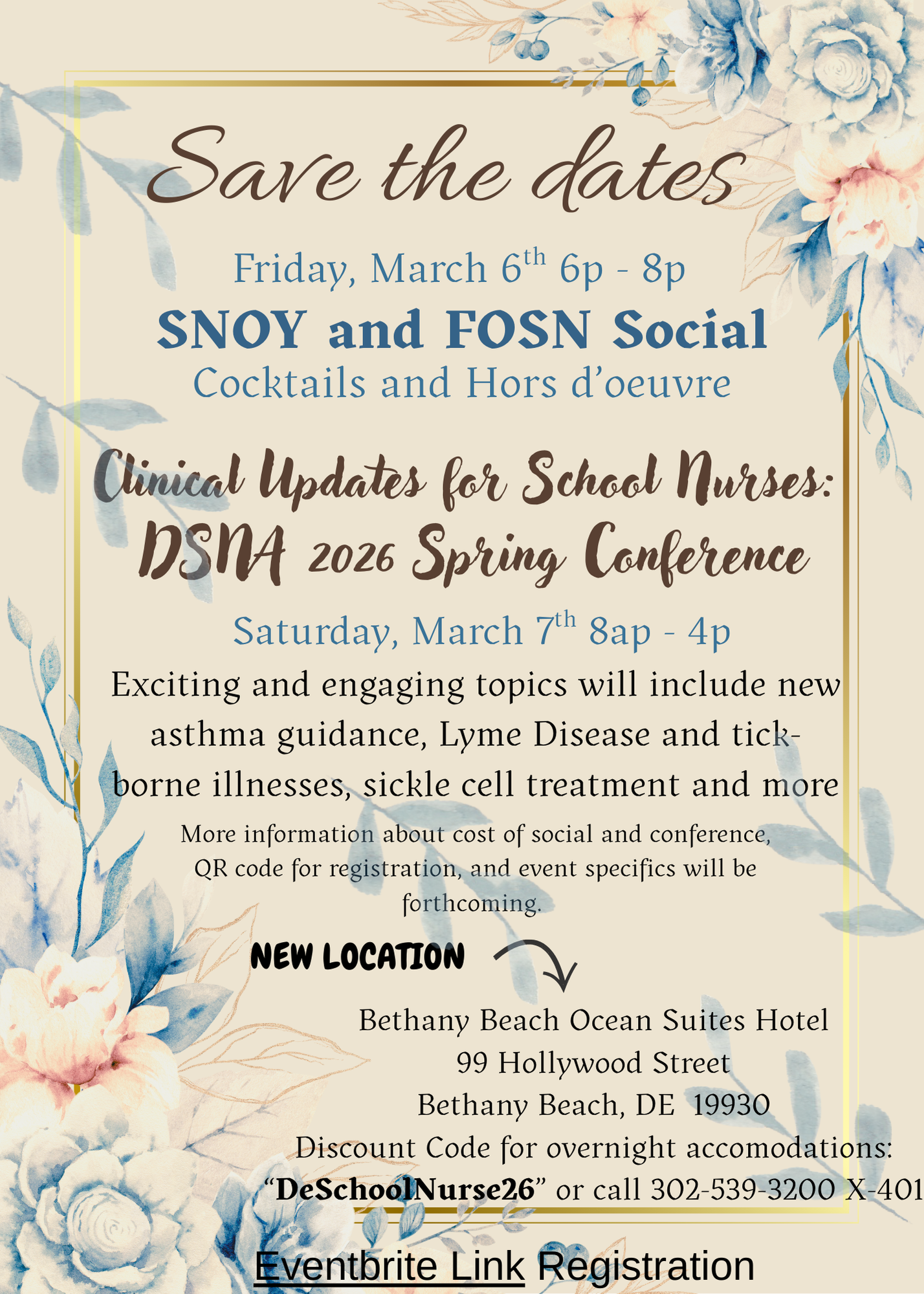 Registration: https://www.eventbrite.com/e/dsna-2026-spring-conference-clinical-updates-for-school-nurses-tickets-1981496366974